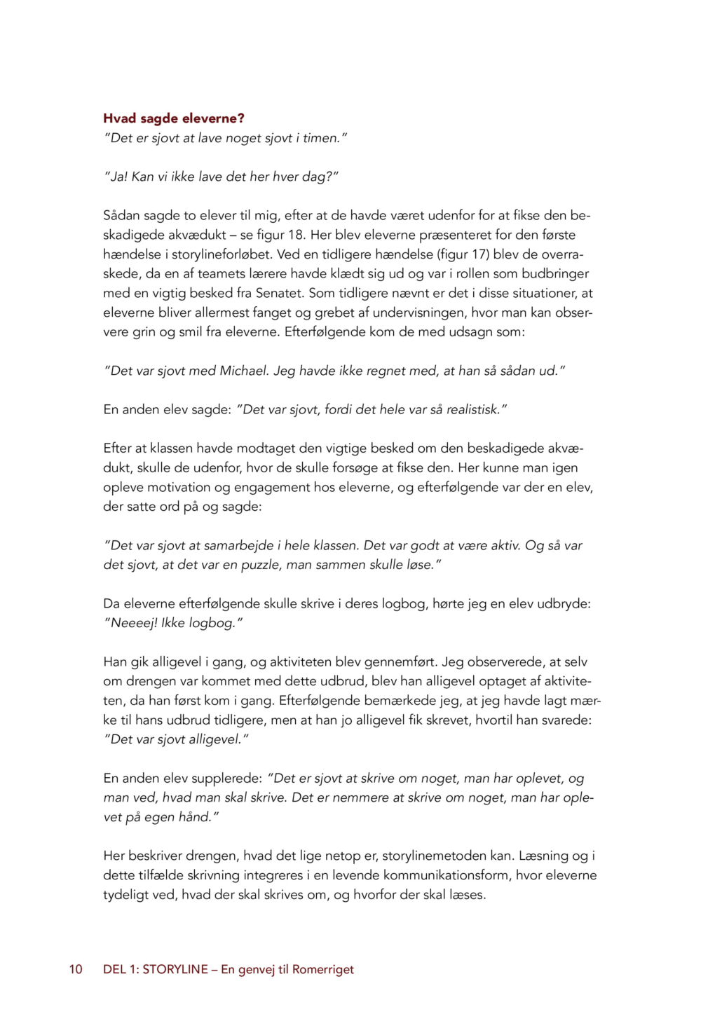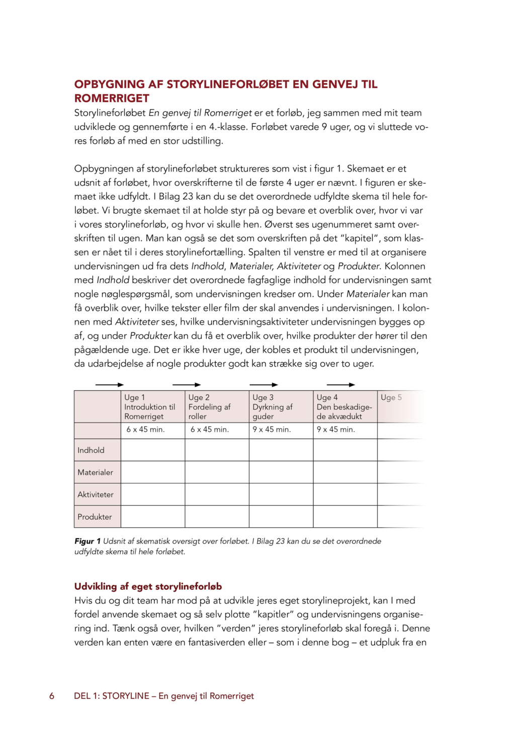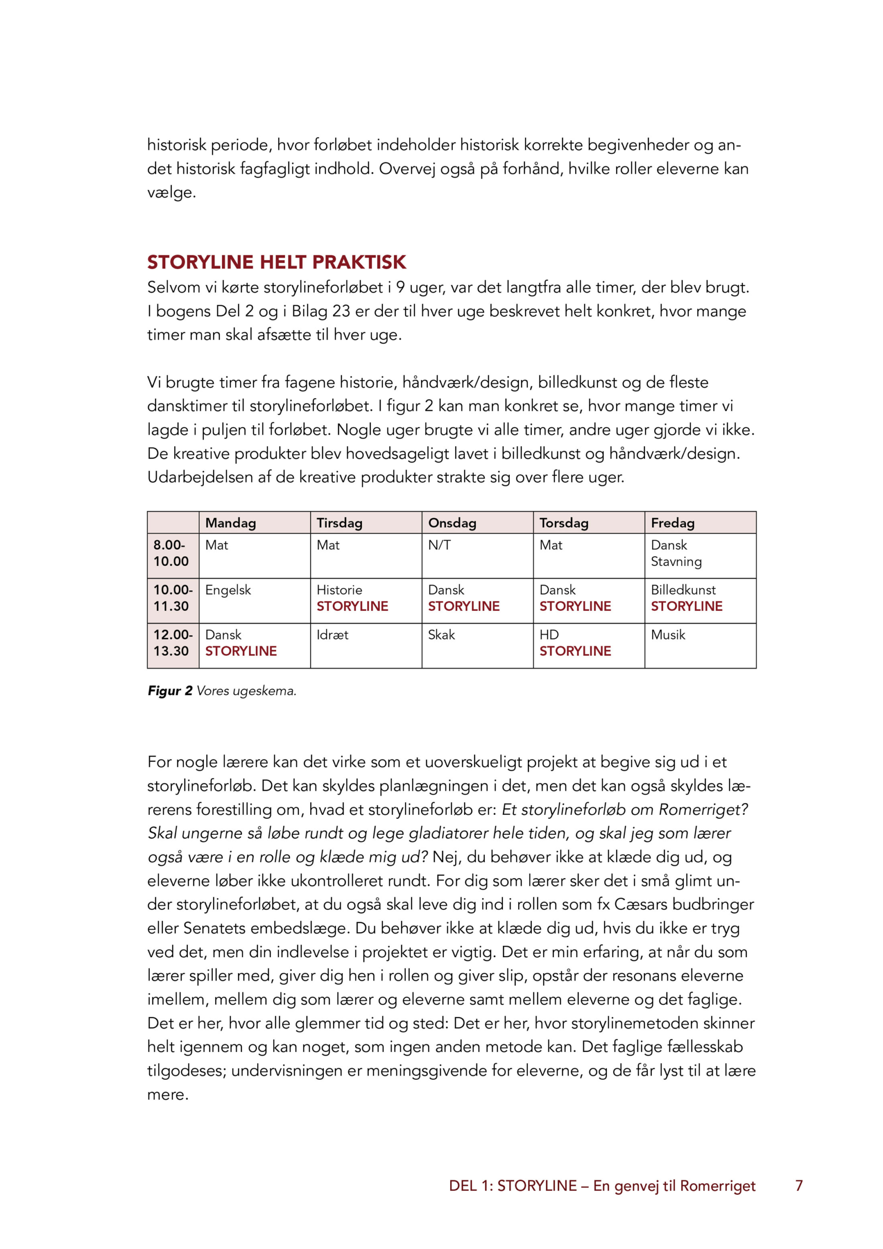 Storylinemetoden tager udgangspunkt i en fortællelinje, som eleverne – med lærerens rammesætning – selv er med til at skabe. I dette forløb bliver eleverne indbyggere i det gamle Rom. De vælger hver deres romerske rolle, som de følger gennem hele forløbet, og de arbejder med både hverdag, religion, samfund, magt og historiske begivenheder. Elevernes faglige viden bringes løbende i spil, når de skal reagere på hændelser, løse problemer og træffe valg i fortællingen.