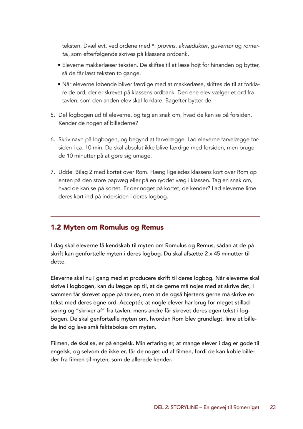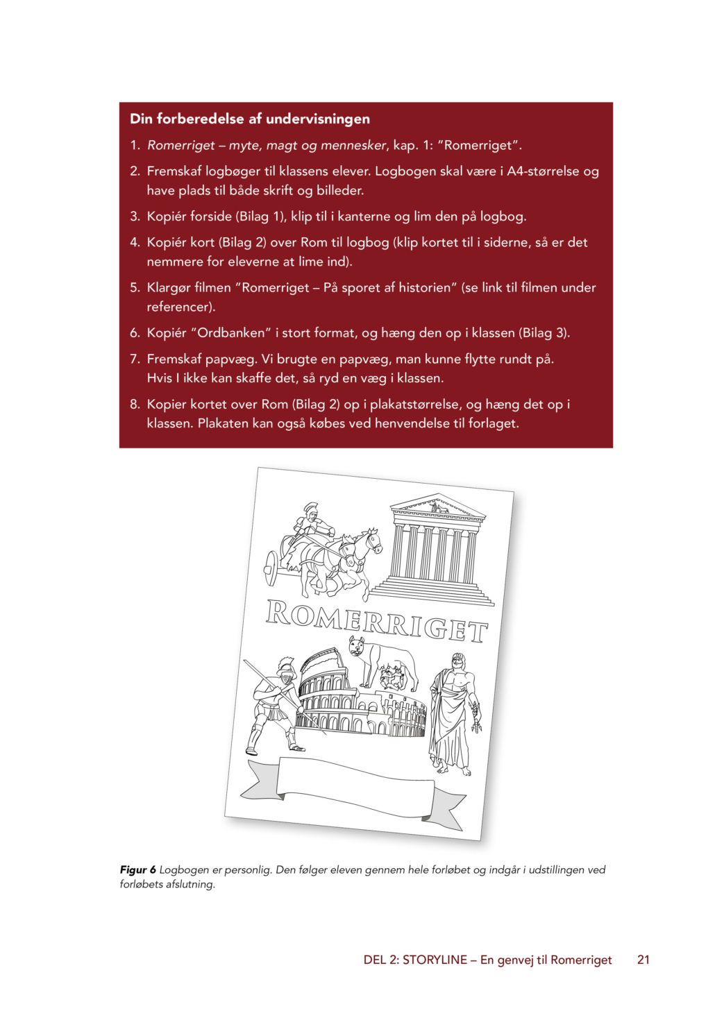 Forløbet kan med fordel gennemføres i samspil med elevbogen Romerriget – myte, magt og mennesker, som er målrettet elever på mellemtrinnet. Bogen giver eleverne et fagligt grundlag gennem lettilgængelige tekster om Romerrigets historie, myter, samfund, religion og hverdagsliv. Elevbogen understøtter storylineforløbet ved at give eleverne viden og begreber, som de kan anvende aktivt i arbejdet med deres roller, fortællingen og de fælles problemstillinger. Sammen skaber de to bøger en tydelig sammenhæng mellem faglig læsning og kreativ, undersøgende undervisning.