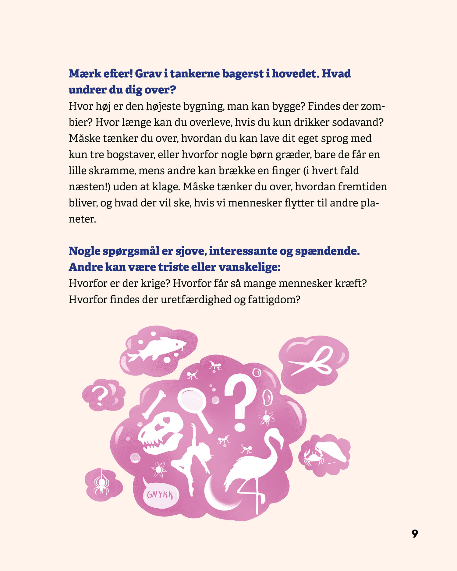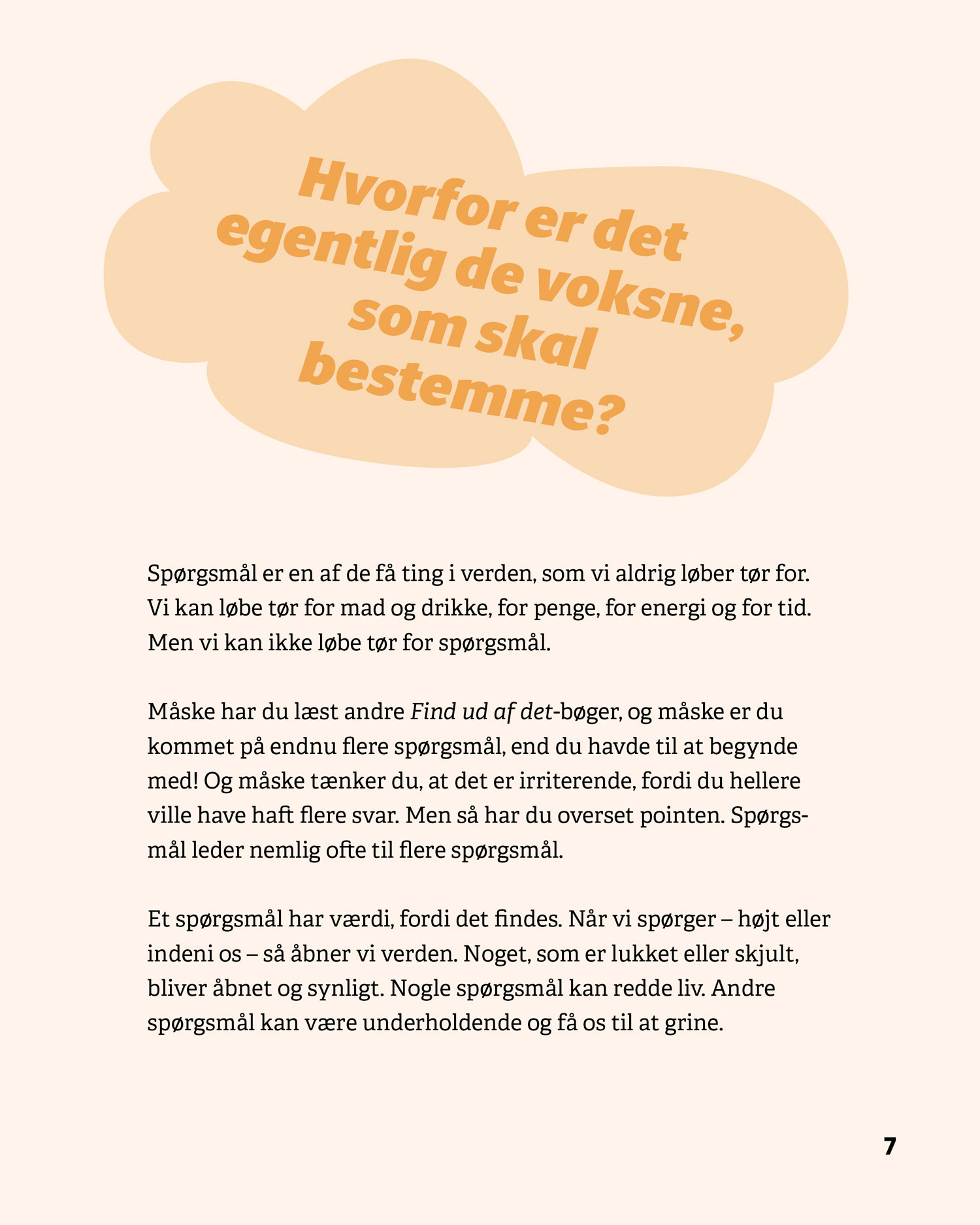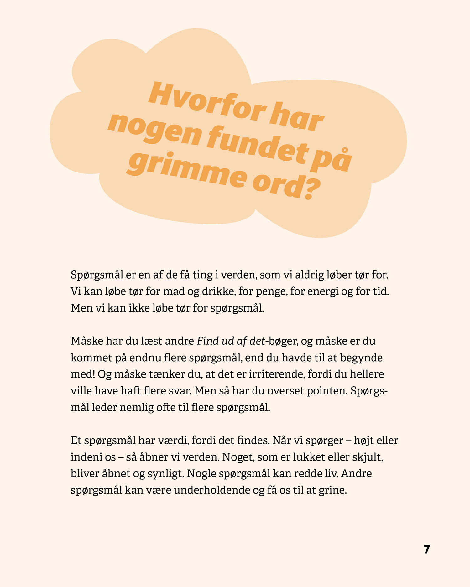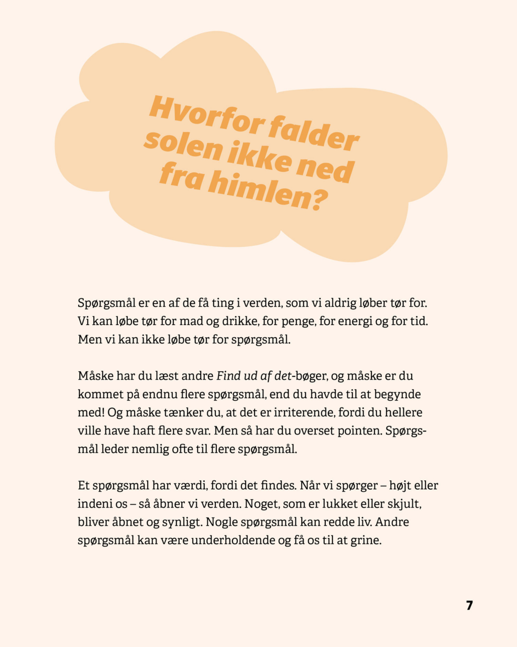 Serien består af fire bøger – Stil spørgsmål, Verden, Mennesker og Sprog – som hver især giver eleverne konkrete metoder til at stille gode spørgsmål, afprøve undersøgelser og reflektere over resultater. De fire bøger kan læses uafhængigt af hinanden.