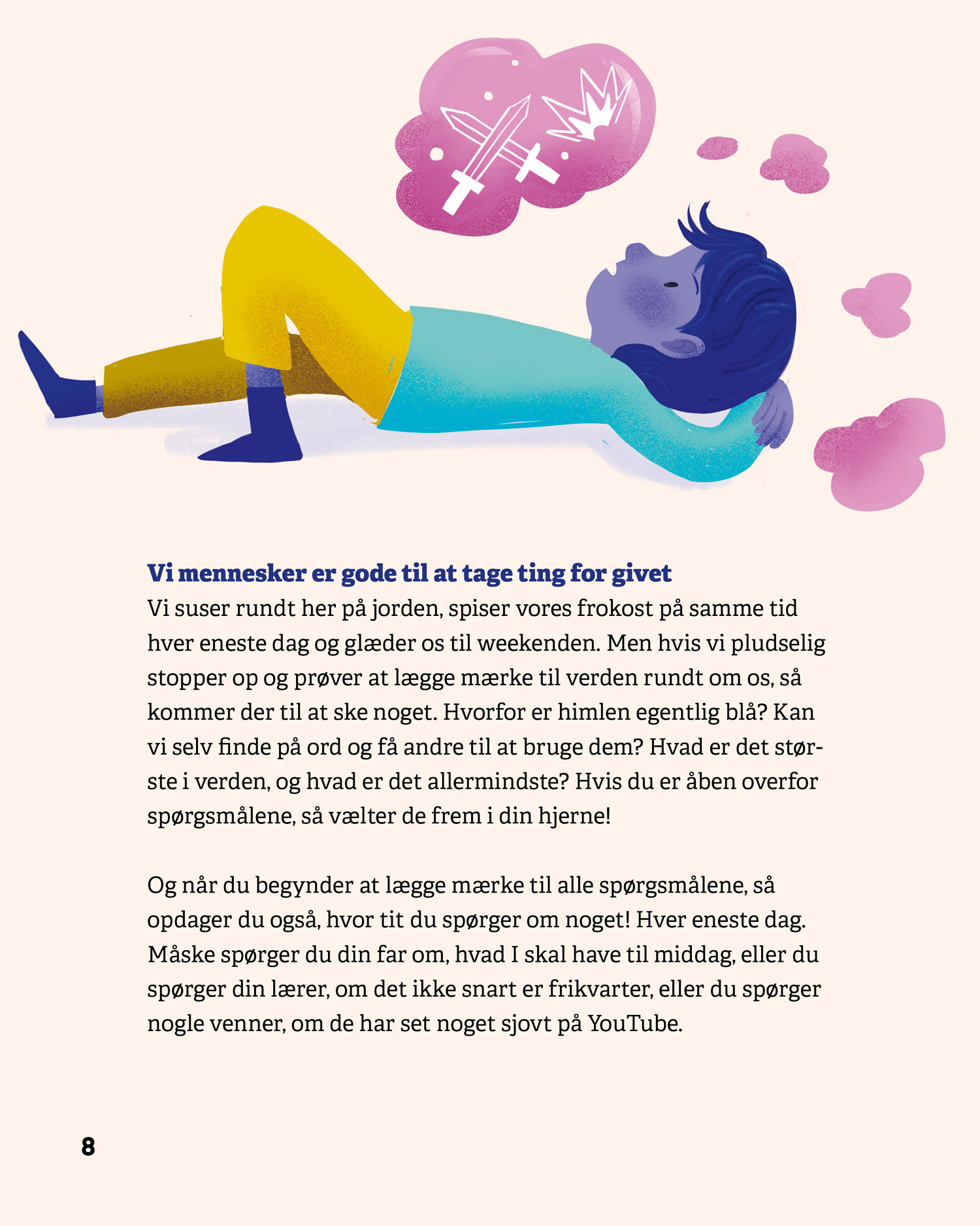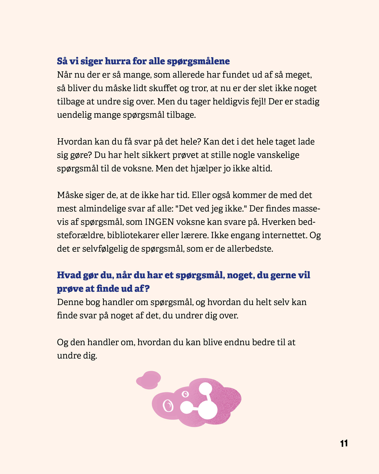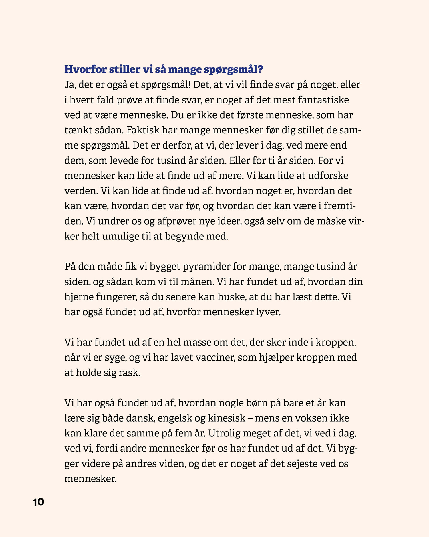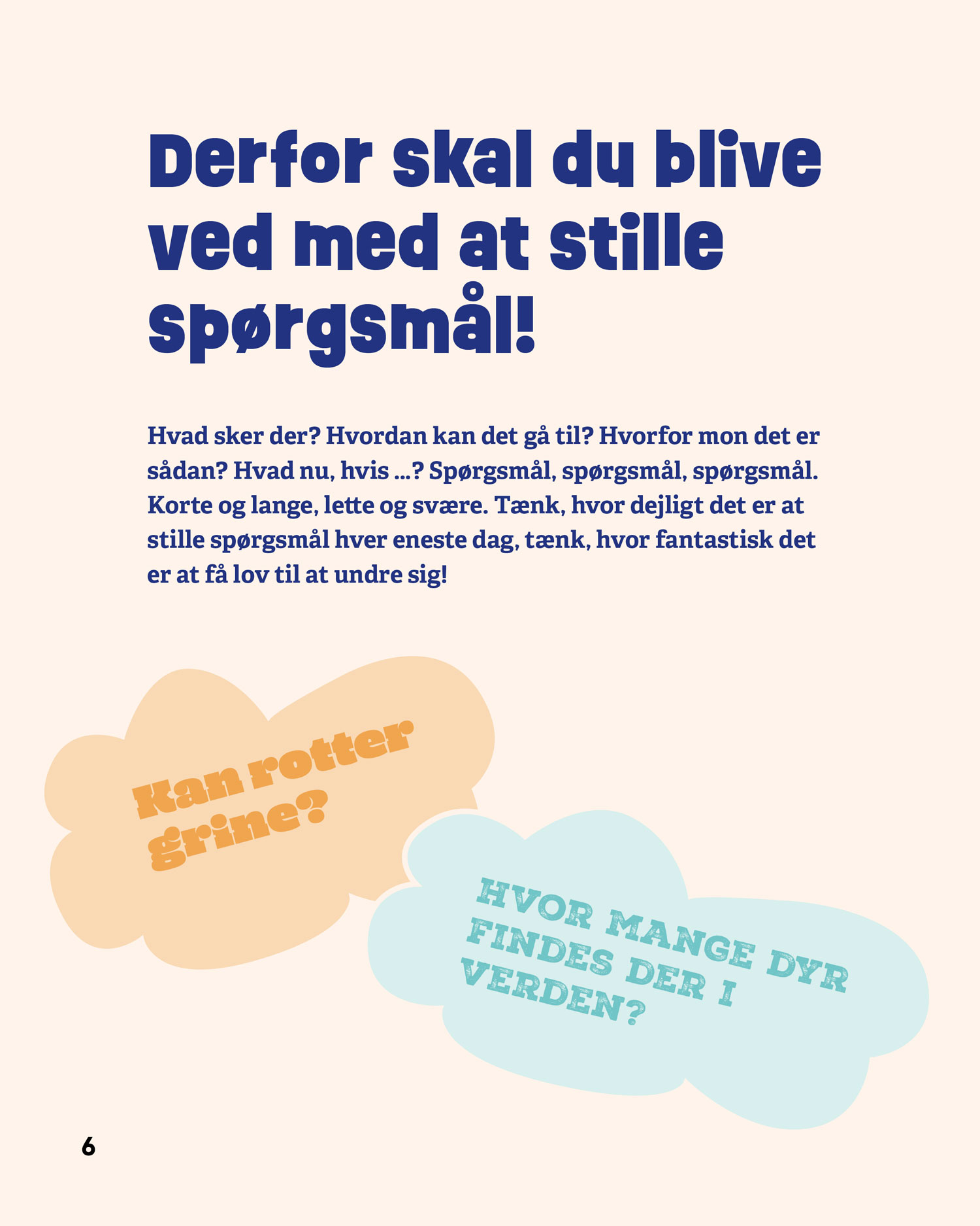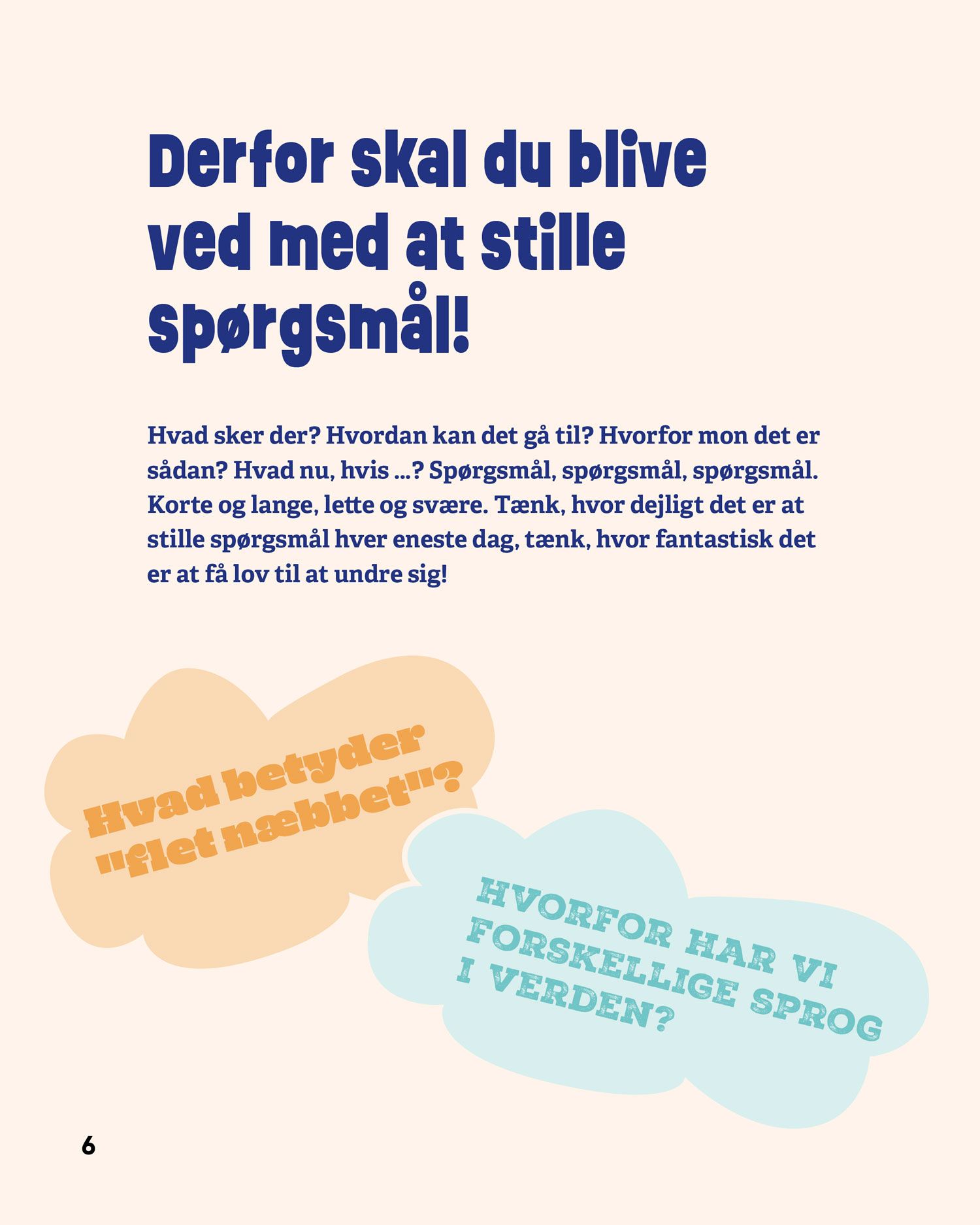 Serien består af fire bøger – Stil spørgsmål, Verden, Mennesker og Sprog – som hver især giver eleverne konkrete metoder til at stille gode spørgsmål, afprøve undersøgelser og reflektere over resultater. De fire bøger kan læses uafhængigt af hinanden.