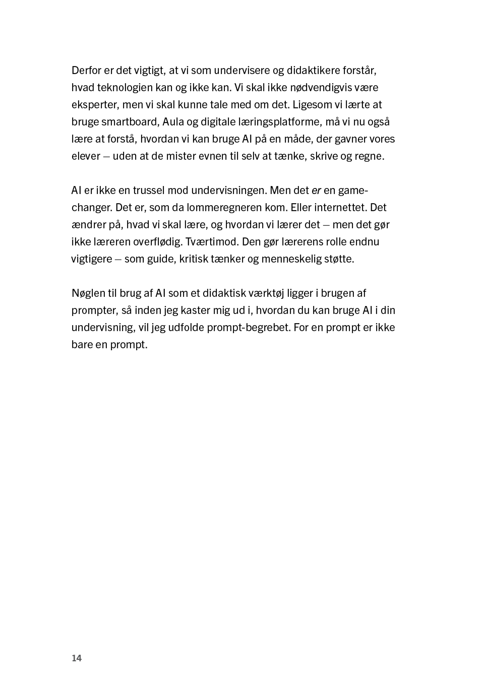 Det er vigtigt, at vi som undervisere og didaktikere forstår, hvad teknologien kan og ikke kan. Vi skal ikke nødvendigvis være eksperter, men vi skal kunne tale med om det. Ligesom dengang vi lærte at bruge smartboard, Aula og digitale læringsplatforme.
